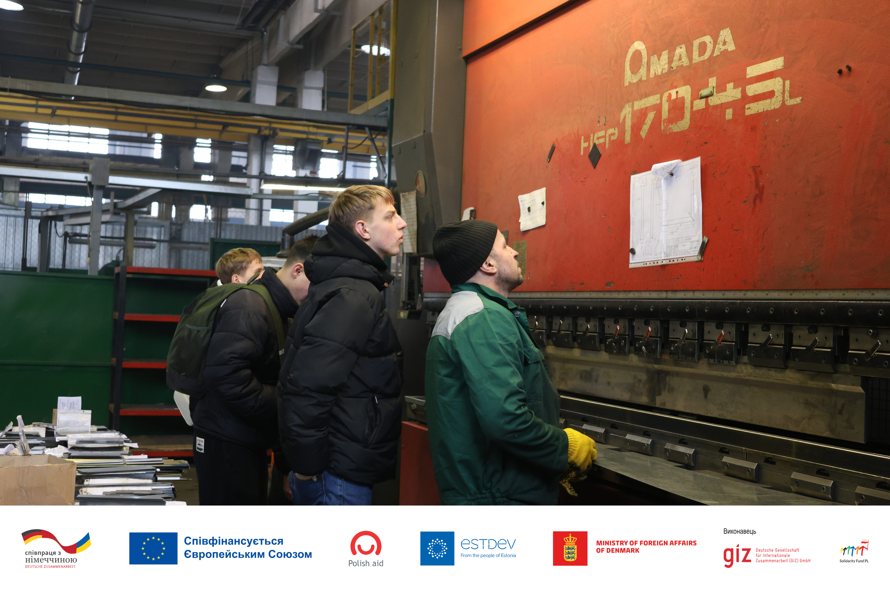 Сьогодні здобувачі освіти працювали на листозгинальному пресі AMADA HFP 170-4.5L, опановуючи навички програмування та точного згинання металевих заготовок за 3D-моделями.